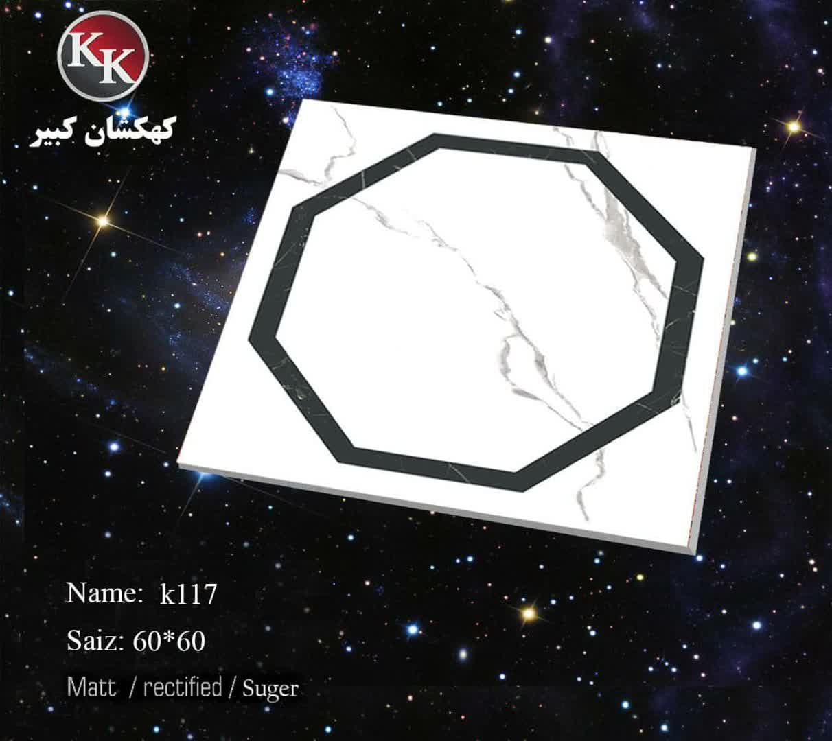 کاشی طرح K117 با ابعاد 60*60 با لعاب مات،مناسب برای کف پذیرایی،کف سالن،کف آشپزخانه،کف اتاق خواب،نشیمن... می باشد.