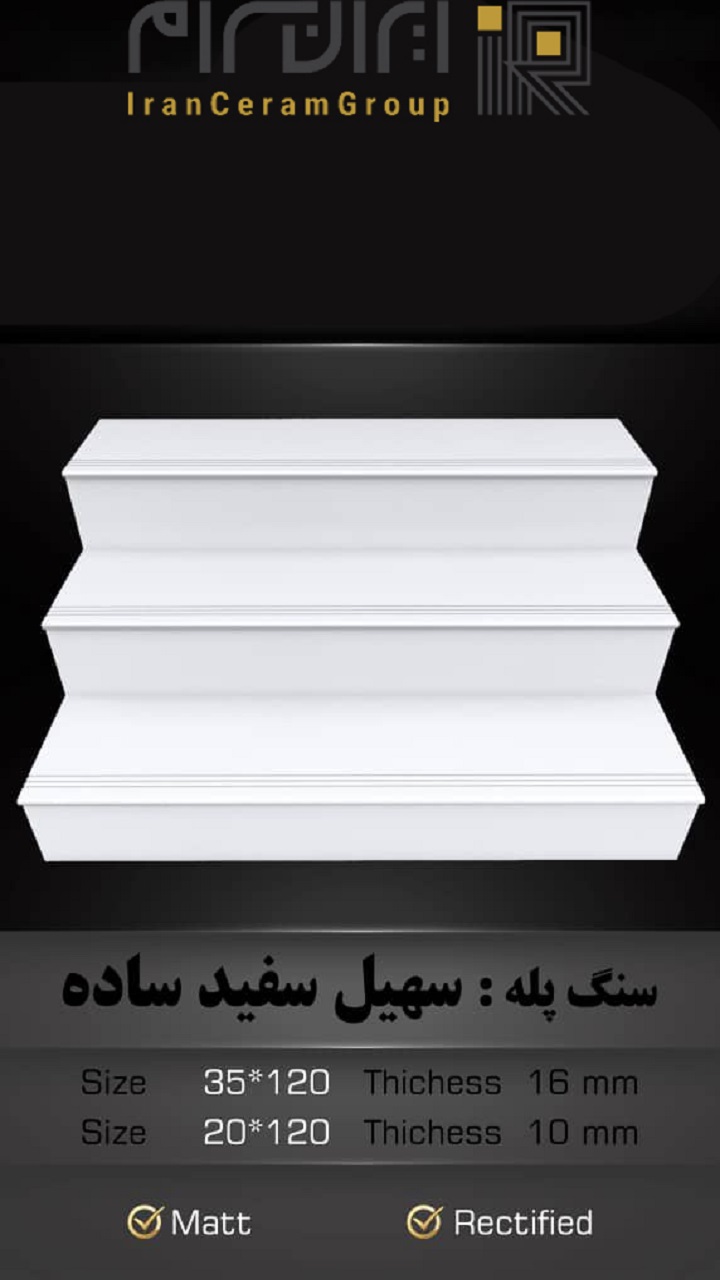 سرامیک پله طرح سهیل سفید ساده ابعاد-120*35-کاشی سهیل میبد-Step Ceramic Soheil Simple White Soheil Tile