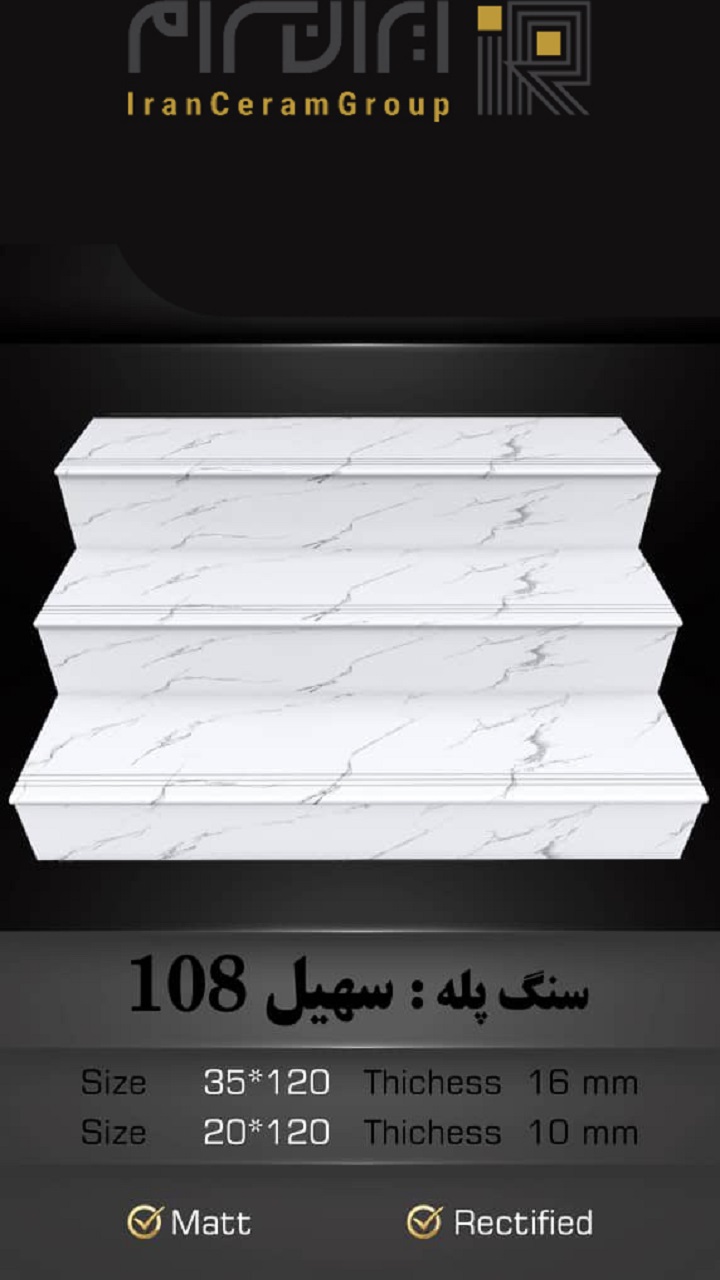 ابعاد این سرامیک 120*35 سانتیمتر بوده و برای استفاده در راه پله، پله، پله داخل و بیرون ساختمان ... بسیار مناسب است.