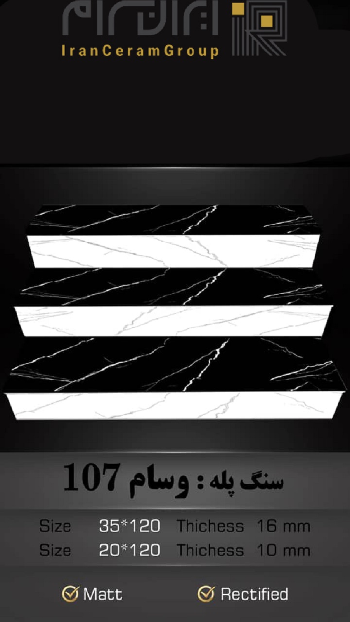 ابعاد این سرامیک 120*35 سانتیمتر بوده و برای استفاده در راه پله، پله، پله داخل و بیرون ساختمان ... بسیار مناسب است.