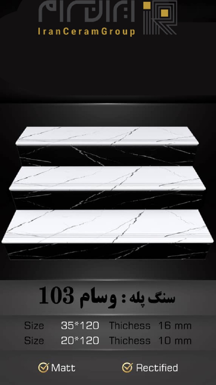 سرامیک پله طرح وسام 103 ابعاد-120*35-کاشی سهیل میبد-Step Ceramic Vasam 103 Soheil Tile