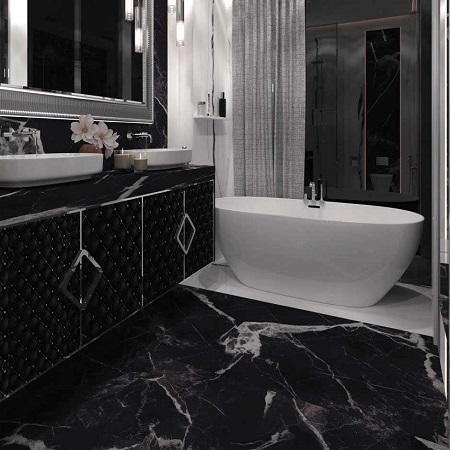 سرامیک اسلب طرح کلکته مشکی ابعاد-150*150-سرامیک الماس کبیر شمس-Slab Ceramic Calacatta Almas Kabir Shams