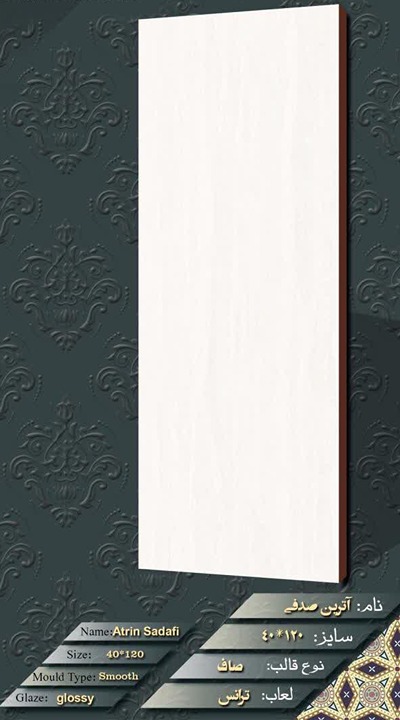 ابعاد این سرامیک 120*40 سانتی‌متر بوده و برای استفاده در بدنه سالن، پذیرایی، اتاق خواب، آشپزخانه و نشیمن بسیار مناسب است.