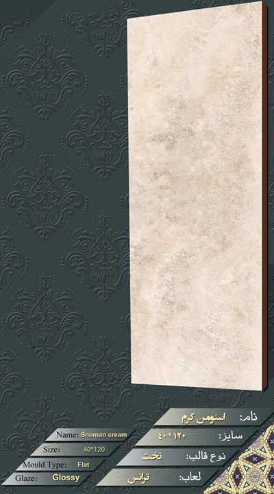 ابعاد این سرامیک 120*40 سانتیمتر بوده و برای استفاده در بدنه سالن، پذیرایی، اتاق خواب، آشپزخانه و نشیمن بسیار مناسب است.